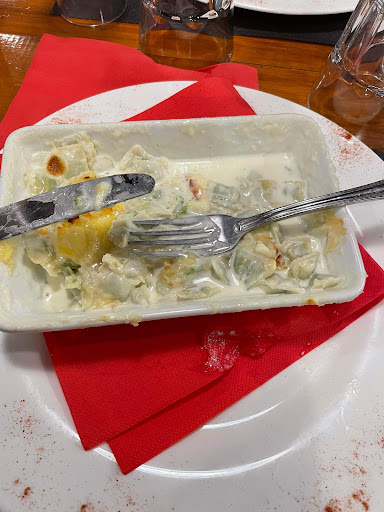La serveuse et le cuisinier sont débordés ( alors qu’il y avait seulement deux personnes dans le restaurant à part nous ) donc si on ne voulait pas trop d’attente on nous a demandé de tous prendre le même plat. On nous a conseillé une recette de gratin de ravioles façon tartiflette que nous avons payé très cher ( pas de prix indiqué sur la carte) 43 euros le repas par personne pour un plat un dessert et du vin.