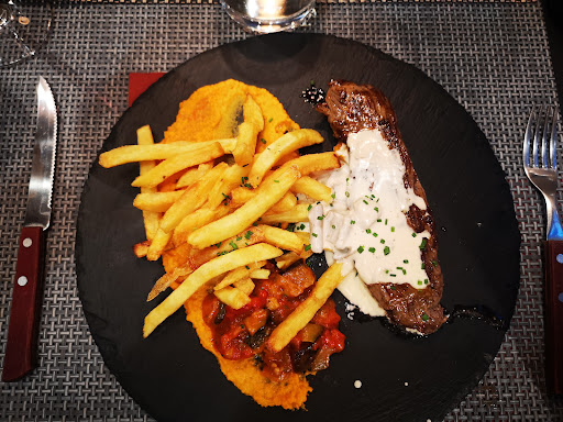 Cuisine de bas niveau, le rapport qualité prix n'est pas convenable,, il faudrait également préciser les accompagnements des plats que ce soit a l'oral ou même directement sur la carte par exemple l'entrecôte avec la sauce champignon, mon compagnon a horreur des champignons, donc si on avais su on aurais pas pris. Concernant ma part, j'ai commandé un plat j'ai pas eu le bon donc on a refait mon plat mais au niveau de la cuisson je crois pas que "bleu" doit être servis comme une semelle de chaussure. Même pas la force de prendre le dessert compris dans la formule. Concernant le service, il faudrait revoir les bases comme les formules de politesse par exemple ça serait un bon début. Pendant que les serveurs debarassaient les tables ils ont posé un plateau avec de la vaisselle salle sur notre table et l'oublie après plus d'une heure. Pour les apéritifs, ayant pris un monaco, je ne sais ce que vous avez mis dedans mais ne recommencez plus, et le mojito sympa sans le rhum, ni glaçons, on sentait que le citron et légèrement la menthe. Point positif malgré tout c'est le vin, une collection sympathique même si peu élargie. Je...