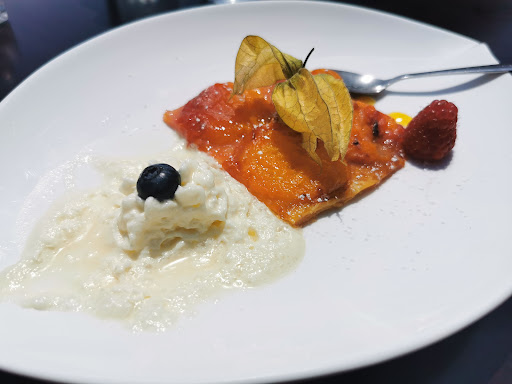 Read moretrès bonne cuisine savoureuse , belle présentation un peu light au niveau quantité . belle soirée serveurs souriants jusqu au moment de l’addition ou le propriétaire sort de la cuisine est devient très agressif dans ses propos envers nos amis qui avaient laissé un commentaire peu élogieux à son égard lors d une précédente visite ( ce qui n a pas empêcher qu’ ils y retournent) . et là déballage de propos pas sympathique et innatendu limite odieux ! la critique est positive qu’elle soit bonne ou mauvaise , mais la dialogue stérile , nous sommes pris à parti un peu contre notre volonté . du coup fin de soirée gâchée et très désagréable , anti commerçant au possible . une certitude nous n y remettons plus les pieds . même la serveuse était fort mal à l aisé a l écoute des propos de...
