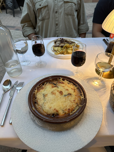 Had A very nice meal. The waiters were very friendly and made sure we had a great time eating at the restaurant. The quality of the food is good and the prices, though they are a bit steep, seem to be fear for the quality you get in return. The terrace is a very pleasant to use; lots of shade and a little fountain is located on the wall. The deserts are well proportioned and their quality is nice, but they seem a little to expensive. So if you are on a budget, you might want to skip a desert in dâavoir of an entre. The kitchen is bringing out food at a respectable rate, but that was mostly due to the fact that we came quite early in the evening (around 19:00). The staff told us that waiting times for the food could be significantly longer later in the evening, so they advised us to come relatively early as that will give you a faster...
