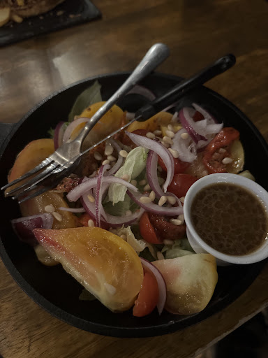 Wir bestellten einen Burger mit Pommes, und für mich wurde extra ein veganer Salat zubereitet, was ich sehr geschätzt habe. Solcher Service ist nicht selbstverständlich, ein grosses Dankeschön dafür!