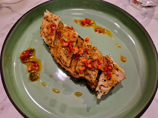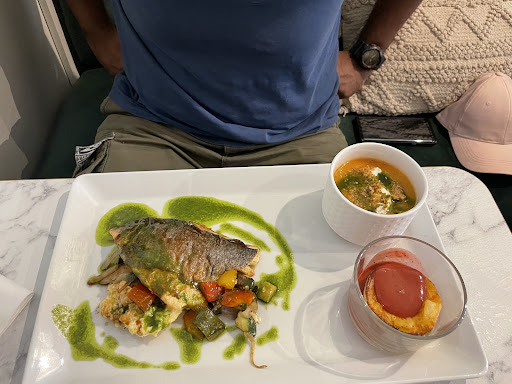 Read moreNous sommes tombĂ© presque par hasard sur ce restaurant lors d'une dĂ©ambulation dans les rues de Valence et ce fut une excellente idĂ©e que d'avoir poussĂ© la porte. Joli restaurant cosy et confortable, les assises sont moelleuses et pour un bon repas c'est important. Nous avons pris directement le menu du jour donc pas d'avis sur la carte et ses tarifs. Le repas nous a Ă©tĂ© servi dans la mĂȘme assiette, c'est trĂšs bien quand on n'aime pas attendre trop entre les plats. Nous avons mangĂ© un veloutĂ© de champignons trĂšs bon, mais alors le veau qui suivait.... ouha !! Une cuisson basse tempĂ©rature maĂźtrisĂ©e, une viande d'une finesse... pas besoin de couteau on pouvait presque la couper avec les yeux tellement elle Ă©tait fondante !! Et les petits lĂ©gumes d'hiver accompagnant Ă©taient croquants et trĂšs bons tout comme le quinoa dĂ©licieusement parfumĂ©.... un magnifique plat rempli de plaisir !! En dessert Ă©tait proposĂ© une panacota Ă la mangue ou fruits exotiques, je ne sais plus. Ce menu est Ă 17âŹ, c'est incroyable ! On ne peut dire que "merci pour cet instant...