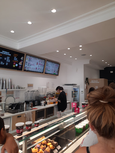 J ai attendu 4 passages avant de me faire et surtout donner un avis : Attente très longue à certaines heures qui pourrait être évitée avec un peu d organisation (un qui encaisse un qui prend les commandes par ex...) Cookies très très secs Jus d' orange pressé qui était très bon avant, désormais coupé, on me dit que non quand je pose la question mais je n en suis pas à mon premier, d autant plus qu ils étaient pressés à la demande et désormais "tout prêts de ce matin" dans la vitrine .. honnêté on a vu mieux (rien n empêchait la personne de le refaire surtout avec le montant des commandes que je passe à chaque fois ) Et pour couronner le tout hygiène... la main qui donne un coup de chiffon, qui rend la monnaie est la même que celle qui attrape vos gâteaux, pas de gants pas de pinces tout va bien .. nous ne reviendrons plus c est certain et vraiment dommage car le concept était pas mal et l endroit chaleureux, manque de professionnalisme et de rigueur c est...