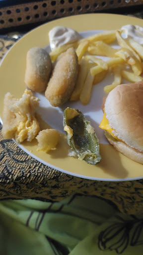 Read moreJe viens à l'instant de leur prendre des jalapenos choquée de ce que je découvre à l'intérieur la photo parle d'elle même Les piments sont entier !!! Il n'y a pas un problème quelque part !!! Ils sont a peine cuit Il me semble que le piment sont coupé en petits morceaux normalement... pareil pour les frites elles sont à peine cuite ...Hé bien pour une première je suis carrément déçu j'espère que la prochaine fois ce sera mieux. Pour ce qui est du filet au fish il est banal mais bon . Je viens de remarquer que je ne pas poster de photo de mon repas je viendrai en personne vous montrer le piment entier ......