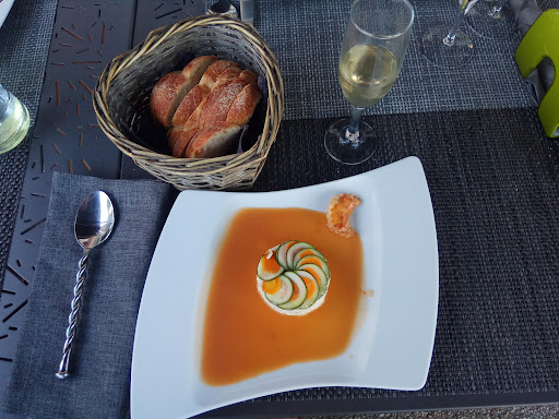 Read moreAlors là que dire Tout d'abord sur le hygiène Masque et gel bien sûr Tout est propre, décoré avec soins pour l'intérieur et l'extérieur est parfait Nous avions une table près des arbres qui entourent la Terrasse et un calmé olympien Pour ce qui est du repas De Surprise en Surprise vous allez .....la nourriture est Divine, bravo au chef cuisinier Pour ce qui est du service,la serveuse ,une dame souriante et vrai, compréhensive et à l'écoute car j'ai des gros problème avec la nourriture et allergie ail échalote ... que l'on retrouve souvent dans les plats.....et bien là parfait pas d'ail ni échalote .... Et a la fin au moment de Payer nous avons Mém pu Parler un peu avec la gérante du restaurant et son Mari cuisinier Des gens très bien. Merci pour cette découverte ... Je pense ne pas me tromper en disant que ça doit être un restaurant familial..... Je mets 10/10 A...
