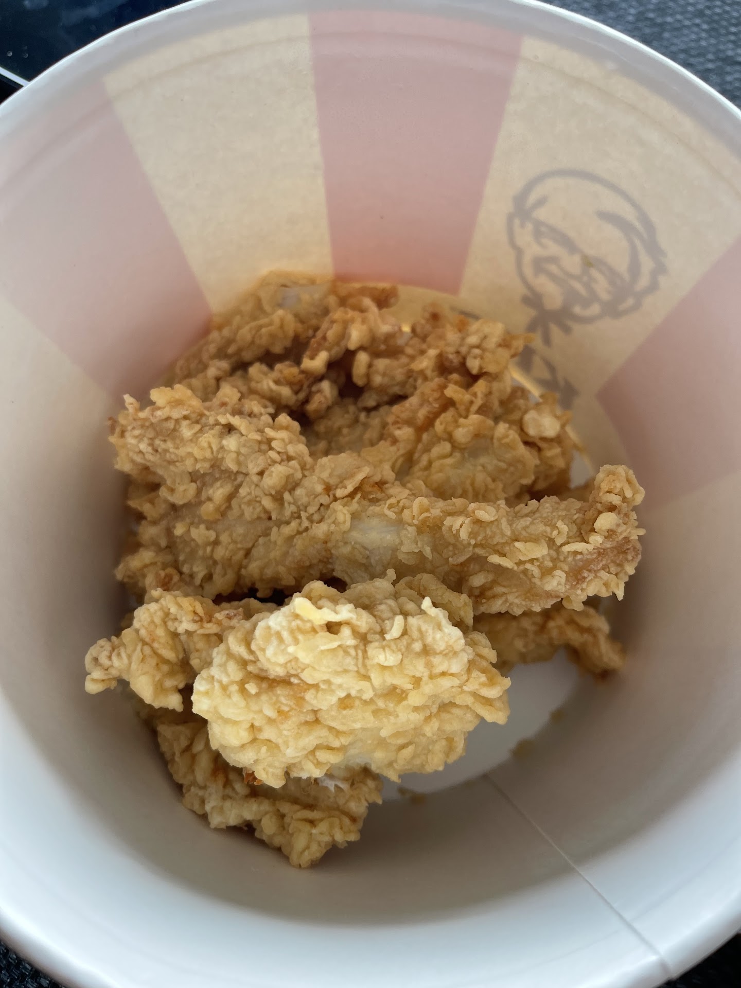Disappointing! If you are looking for traditional KFC, you won't find it here. There is not a leg, thigh or piece of breast to be found. Everything is based on chicken burgers, strips and wings. In fact it reminded me of McDonalds with chicken and not whatever meat McDs use. We went on a Saturday lunch time and it was packed so very popular. After spending 20 mins trying to find a 3 piece meal we realised it had to be a bucket of strips and wings for two. The food arrived with only one portion of fries and it was; not hot! but I couldn't be bothered to complain. Still my daughter enjoyed it. The indoor children's play area is a big, if somewhat noisy, hit with the little ones. I'll give the one in Lille a...