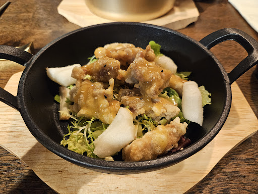 The general concept and idea behind it is good, but the place definitely needs major improvements: First of all the fact that they didn't have a maps page is absurd as there was no visual indicator of an opening day and the hours/days right now are blocked by an inflatable Santa ( wich should be removed, it just clashes with the style of the restaurant...) Starting from the atmosphere, the place is quite nice, well kept and generally pretty, but it does have some elements that are not perfect like the choice of lighting... That said the major offense was the kpop at fairly high volume that was just too distracting and simply didn't fit with the ambience of the place itself; where instead I would expect maybe some nice Korean jazz, of which there is lots and of incredibly high quality, and it doesn't have random screams that make you drop your noodles in the spicy broth that then splashes on your face. That said, going on: the servers where quite nice and the general level of service was higher than the norm ( since here in France it's generally quite bad...), but I would still like for them to actually raise their voice a little since it was difficult to hear what they were saying. The menu itself is a bit of a miss too, because unless you know exactly what every plate is, you are probably going to have at least a bit of a surprise because it just doesn't describe what the food is, at least not that well ( example: I didn't expect to have spam, wurstels and industrial hamburger-like cheese in a noodle soup... That was kinda jarring ), so I would definitely ask them to improve it. Now for the worst: the food. Firstly: the food was quite bland and the flavours were completely masked by the condiments: the chicken was overpowered by the sauce, the noodles made with a soy sauce as a base ( Jajangmeon ) didn't taste like anything and the Rameom, as someone that didn't know exactly what it was, was terrible ( the menu says that it's noodles with vegetables and a spicy or not spicy broth, that's it. BUT THERE WAS SPAM, WURSTELS, CHEESE, AN EGG, MUSHROOMS, quite differing from the menu description. And the only thing about all of this was the server saying that "there is meat it the plate", which is an understatement ). Lastly: the wait. The entrée came after the main dishes, wich is again absurd. The entrée should be a plate that can be prepared in five minutes to then be served as early as possible to not let the customers wait, instead here we waited for thirty minutes to have a ( very small ) plate of overpriced chicken, which wasn't that special at all. All in all, the concept is good, but the execution is unfortunately a bit if a mess. I genuinely hope...