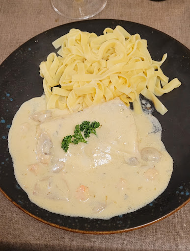 Idem pour les plats qui Ă©taient vraiment bons ( Dos d'Ă©glefin sauce Ă la dieppoise en photo, poisson parfaitement cuit), la cuisson du magret de canard qu'une autre personne de notre table a prise Ă©tait nikel đ