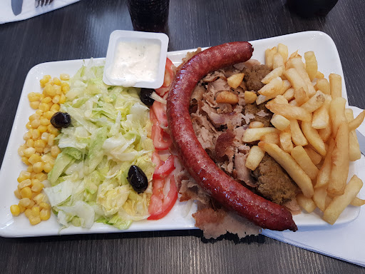 Le service à table est de qualité, professionnel et convivial.. le temps entre la commande et le service est raisonnable. Le choix est conséquent et pour tous les goûts. Voilà pourquoi je me suis orienté vers l'assiette mixte: -crudités, -boulettes Kefta(extra.. pas sèches mais moelleuses) viande Kebab, -merguez et sauce blanche... L'assiette est bien présentée est ordonnée..
