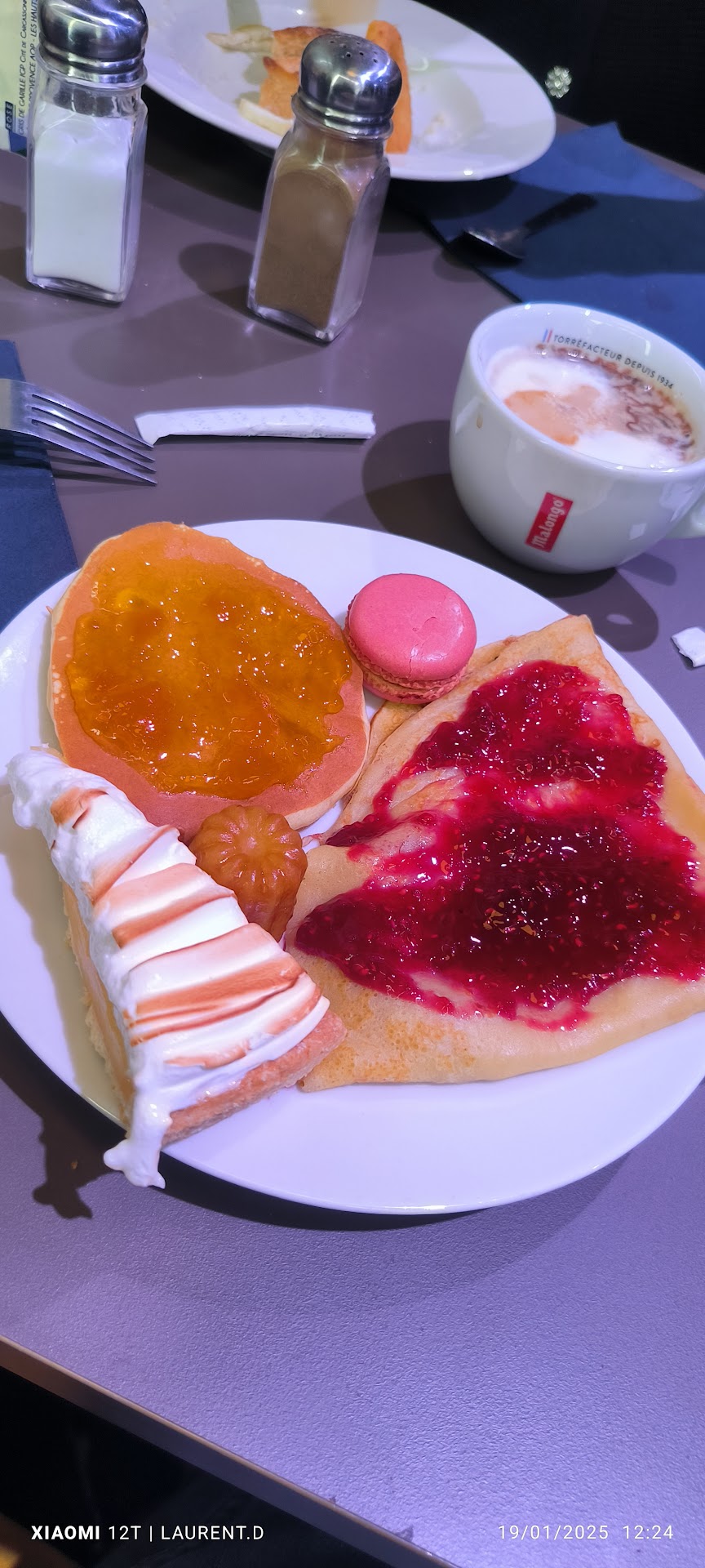 Pour ma part je valide les crêpes, bien meilleure que les pancakes de la fois dernière. Je n'ai prit aucun gâteaux prés des aliments au chaud, donc pas frais dans une salle très chaude...résultat pas top.