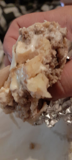 Le tacos avait juste un goût de détergeant, sans parler de l'hamburger; un pain trempé; un steak cramé; collé dans de l'aluminium; d'une odeur immonde.