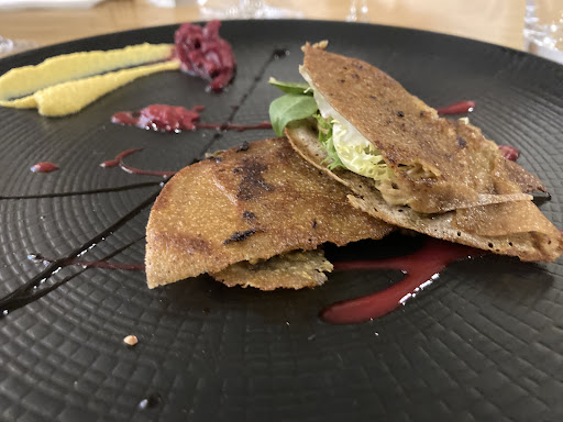Visite samedi 21 octobre au dîner. Ils proposent un menu entrée plat dessert à 33€, bière pression (33 cl) à 5€, verre de rosé du Luberon à 3,70€. Accueil et prise de commande professionnelle. Malheureusement, les boissons sont servies chichement. Le vin au verre, en règle générale, c'est minimum 12 cl, mais souvent plutôt 15 cl et là, "au doigt mouillé" c'est un petit 10 cl. Le verre de bière n'est pas servi "jusqu'au trait". Entrées : foie gras de canard et gravlax de saumon : irréprochables ! Saveurs au top !! Quantité très convenable, surtout concernant le saumon. Plat : grande brochette (c'est le concept de ce restaurant) servi avec frites, 3 sauces (bleu, moutarde et poivre) salade et ratatouille. La brochette est bien. Par contre, si ce restaurant fait l'effort louable de proposer des frites maison, la variété de pommes de terre est totalement inadaptée (beaucoup trop riche en sucre) donc frites beaucoup trop roussies et pas croustillantes. Je sais que les pommes de terre Bintjes (LA pomme de terre à frites par excellence) deviennent rarissimes mais il existe des alternatives sérieuses (Nicola ...). Je conseille donc à ce restaurant de prospecter une variété plus adaptée. Ratatouille et sauces sans réels intérêts. Dessert "crumble revisité coco et fruits frais" : le crumble est bien, par contre je suis moins fan de la chantilly au sarrasin, et je n'ai pas trop senti la coco. Dommage, j'étais parti sur la note maximale après les entrées. En conclusion, je suggère de servir plus généreusement les boissons et de chercher de meilleures pommes de terre à frites. Je...