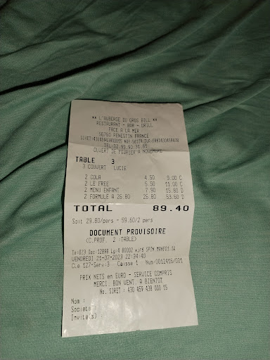 Entre le cocktail sans alcool 5€ 50 /l un (goyave et fruit) qui n'avait aucun goût sauf de l'eau. Je voulais prendre 1 entrecôte mais celle ci était à 26,50€, le même prix qu'un menu alors j'ai prix un menu(je n'aurait pas dû) Menu à 26€80: 1er menu: pâté de campagne maison avec pain de seigle(à part le pain que je n'aime pas, rien à dire sauf que je peux manger cela à la maison) saucisse cuite au feu de bois avec frites (pas génial les frites car il était écrit " frites fraîche mais pas maison ???" ) crêpe chocolat(rien à dire) 2eme menu: crevette (import mais d'où ???) pour un restaurant au bord de mer, ça craint poisson riz basmati et julienne de légumes ( poisson pas assez cuit et julienne de légumes que je soupçonne congelé) Glace vanille et framboise( la framboise acide)