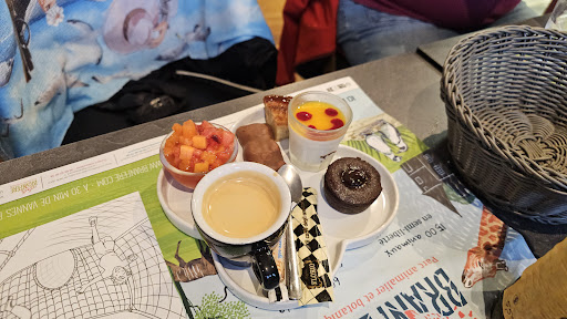 Bonjour je vous recommande cette petite brasserie où les serveuses sont très pros et le repas correct entrée camembert au miel très bon ensuite moules frites marinières pour un et crème pour l autre peut-être un peu salé car .ous salons très peu desserts crème brûlée pour moi et devant moi super surprise 😲 et autre personne kouing avant boule de glace excellents desserts le petit bémol au début à l apéritif on nous à emmener sur la table en même temps les bols pour les futurs déchets de moules et l entrée dommage nous aimons apéritif tranquille et pas d eau plate non plus là un peu long...