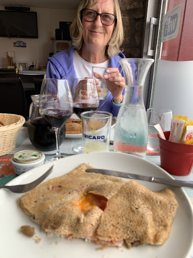 5*s for being cheerfully open and serving food on a Sunday afternoon and into the evening. Nice terrace with a view across to the beach, darker interior. Simple menu of favourites. Had salad niscious and galette complet with beers, ice cream and coffee to finish- perfect seaside lunch. Service quick. Happy atmosphere. Car park nearby-...