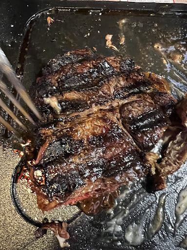 Well it’s a typical chain restaurant, atmosphere was decent, seemed pretty popular amongst the locals. The appetizer Mix Tapas Classic was ok, nothing special but tasty. The welcome salad was more like a salad shooter it was tasty and free. We thought it would be safe to order a steak considering it’s a Steakhouse. I asked for medium doneness and my husband requested well-done. It was the worst steak I have ever had, husband’s steak wasn’t as burnt as mine but it was still burnt. It was burnt so bad it was bitter. When I took my first bite I thought wow….thats a lot of gas on the meat and it was charred. The second bite was worst than the first bite. The meat was tough and when we finally turned it over after my husband tried it we could see why it tasted so bad, there was a thick crust of burnt meat. Like they hadn’t cleaned the grill before they put my steak on it and the heat was so high it burned the meat and seared all the other previously burnt meat and marinade that was stuck to the grill onto my 21€ steak. If I could give negative stars for taste I would. The server was nice but when I told him my steak was terrible he did nothing to remedy the terrible meal just asked me if I wanted more fries. I will never go...