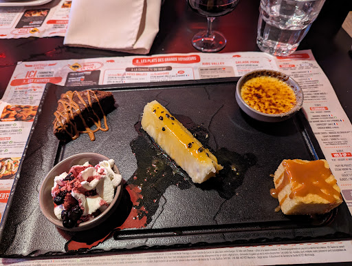 Well itâs a typical chain restaurant, atmosphere was decent, seemed pretty popular amongst the locals. The appetizer Mix Tapas Classic was ok, nothing special but tasty. The welcome salad was more like a salad shooter it was tasty and free. We thought it would be safe to order a steak considering itâs a Steakhouse. I asked for medium doneness and my husband requested well-done. It was the worst steak I have ever had, husbandâs steak wasnât as burnt as mine but it was still burnt. It was burnt so bad it was bitter. When I took my first bite I thought wowâŠ.thats a lot of gas on the meat and it was charred. The second bite was worst than the first bite. The meat was tough and when we finally turned it over after my husband tried it we could see why it tasted so bad, there was a thick crust of burnt meat. Like they hadnât cleaned the grill before they put my steak on it and the heat was so high it burned the meat and seared all the other previously burnt meat and marinade that was stuck to the grill onto my 21⏠steak. If I could give negative stars for taste I would. The server was nice but when I told him my steak was terrible he did nothing to remedy the terrible meal just asked me if I wanted more fries. I will never go...