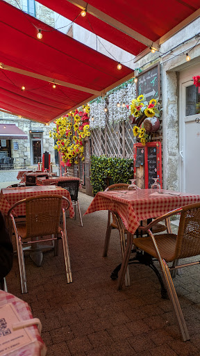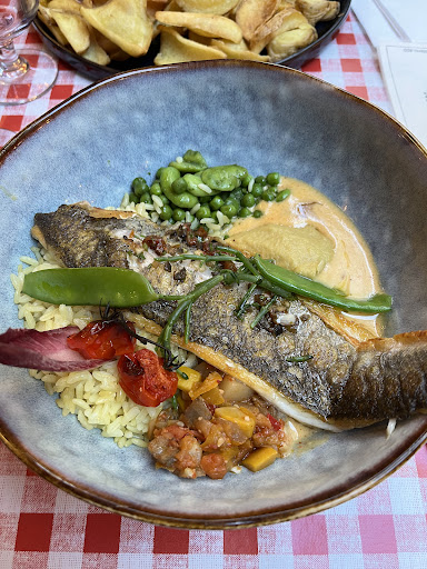 Found this place on Google, it looked quirky so gave it a try. We didn't book so they only had tables outside, reluctantly we decided to stay but so glad we did. (They had blankets) The atmosphere was good,the serving staff were very good, the food was delicious and well presented....we had the oysters and Gravalax to start and steak as a main, it came with homemade pepper sauce and the most amazing fries(never seen any like this; thin and scoop design). Profiteroles for my partner and mixed sorbet for me finished the meal. Our waitress was fairly new, 2 days in the role of she was delightful, very attentive, spoke very good English and successfully answered all my partners bizarre questions. Unfortunately not open on a Sunday otherwise we would have...