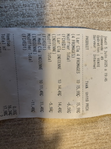 Commande passĂ©e pour un retrait Ă 19h45. Jâarrive Ă 19h50, lâapplication indique que câest prĂȘt, mais on me dit que non. Jâattends jusquâĂ 20h10, moment oĂč un responsable fait enfin lâappel des commandes : ma commande Ă©tait en rĂ©alitĂ© prĂȘte depuis le dĂ©but⊠mais oubliĂ©e. RĂ©sultat : pizzas froides.