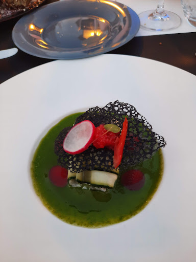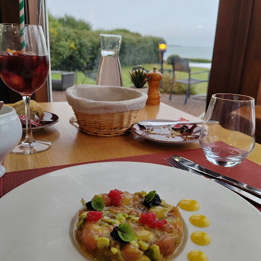 Read moreWhat "sold" us this hotel was definitely the location, down a longish, country lane and far from the crowds at other parts of this popular area of the Gulf of Morbihan. The building is vaguely like a bungalow with rooms in a steeply sloping upstairs, all with velux roof-lights. We could stay only one night- which was just as well, as the day was exceptionally hot (30c.) and the heat just increased as we took our luggage above. Unfortunately, our bedroom was at the front, overlooking the pleasant entrance but meaning that there was no breeze from the sea. The room was smallish , as was the shower-room, but the latter had everything one needed and was clean. Several room doors needed re-painting quite badly.||There is a large terrace and a lawn surrounded by bushes; the other side of that is a coastal footpath and a pretty, quiet (well, June!) crescent of a beach with pines. Total quiet except for the sea lapping in to the fine sand. Plenty of parking, by the way,||3-course dinner was 23 euros. Good value for money. I had a small "assiette de pecheurs" with 2 absolutely delicious oysters amongst the rest. My partner had fried Camembert --at least 6 pieces and good. He had a boned, fresh plaice with sort of roast potatoes; I had a mound of morgate, (squid) on...roast potatoes. We both enjoyed the main items but...roast potatoes, rather soggy, with fish...no-no. Afterwards, we both had cafe gourmand, which was good. The wines were a medium price but the bread with the starters was DELICIOUS...we ate it all and the cute young waitress brought us more.||Breakfast was o.k. Pity to have plastic-wrapped pieces of cheese . Excellent coffee.||For us: location 10/10. Room price including breakfast : 8/10 Dinner: 8/10 but would be more if slightly more trouble was taken with those main course veg. Service: 8/10. The big question....would we return....yes, but really because of...