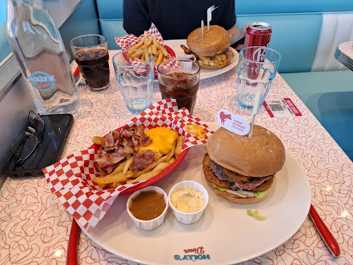 Grosse déception lors de mon passage à Holly's dimanche dernier. Dans un premier j'ai attendu que le drive ouvre pendant une bonne quinzaine de minutes. Voyant que rien ne bougeait, je me suis déplacée a l'intérieur ou on m'a signalé que le drive ne fonctionnait pas. Un petit mot n'aurait pas été du luxe. Je passe ensuite ma commande sur une des 2 bornes et ne voyant a aucun moment que la borne me propose de passer ma carte de fidélité, je décide de choisir le paiement au comptoir. La borne me signale que ma commande est enregistrée mais qu'elle ne fournit pas de ticket. J'en parle à la personne a côté de moi qui me dit que lui non plus n'a pas eu son ticket. Ok. Nous patientons. Je sais par expérience que manger chez Holly's demande beaucoup d'attente mais c'est Ok. Les personnes qui ont commandé avant moi sont appelées et servies. Au bout d'une trentaine de mn, je m'inquiète quand même de ne pas avoir ma commande et je demande au serveur. Visiblement il a autre chose a faire que de répondre à mes questions. L'autre personne qui n'a pas eu de ticket lui dit qu'elle attend aussi depuis longtemps et qu'on aimerait savoir quand on va être servis. Le serveur nous fait la liste des commandes à venir et aucune ne correspond aux nôtres. Que de toutes façons "c'est pas grave vu que ça n'a pas été encaissé et que lui n'est pas dans la borne, il prépare juste les commandes". Quand on lui demande ce qu'on peut faire, il nous répond nonchalamment de repasser commande sur la borne et d'attendre. Pas même une proposition pour faire en sorte de nous servir plus vite, rien. Bref 1h de gaspillée pour rien,...
