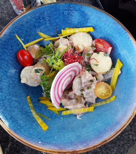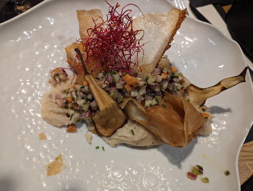 Sur tous les plats que nous avons commandés, seuls deux étaient mangeables : les coquilles Saint-Jacques avec pâtes façon risotto et le camembert rôti. Les plats végétariens, le menu enfant, le ceviche, le poulpe frit, et surtout les couteaux de mer étaient décevants et parfois même dangereux. Le poulet du menu enfant était très sec, probablement surgelé. Le poulpe frit était caoutchouteux, l’huile de friture avait une mauvaise odeur et goûtait comme dans une cantine indienne bon marché (à cause des épices mal assorties au plat). Le ceviche manquait de saveur, et la combinaison avocat-concombre-betterave était décevante. La planche végétarienne était ennuyeuse et sans saveur. Et le pire : les couteaux de mer étaient amers et remplis de sable, à tel point que j'ai dû courir aux toilettes pour rincer ma bouche à plusieurs reprises.