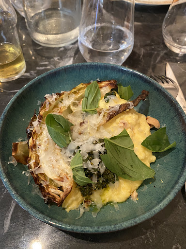 Read moreNice hidden wine bar and restaurant settled in an old Vannes medieval building. Food is carefully prepared with local products and provides great ideas, like this polenta with grilled white cabbage and homemade pesto and roasted hazelnuts! The œuf mayonnaise is also hyper well executed with a perfect cooking time and twisted mayo with wild garlic, one of the best...