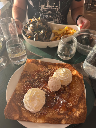 Rien à dire, tout était parfait : La possibilité de composer sa galette avec un large choix d'ingrédients (comme rarement ailleurs), sacrément bien garnie et surtout très grande ! Les burgers avec la possibilité de changer la viande par une galette végétarienne. Les moules marinières savoureuses, comme on aime et surtout servies à volonté avec les frites ! Crêpes originales avec très bonnes glaces.