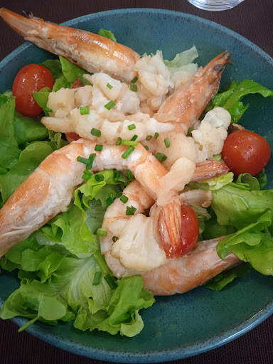 Read moreExcellent déjeuner en famille, 5 adultes, avec nos deux chiens (autorisés). De l'arrivée au départ, la gentillesse du patron s'est faite sentir. Du conseil touristique à de simples échanges, l'expérience était très chaleureuse. Niveau assiette, nous avons tous été ravis. Mention spéciale à la brochette de lotte, st-jacques et crevettes. Délicieuse, parfaitement cuite et accompagnée. Fait relativement rare, le vin rouge pris au pichet était directement servi depuis une très bonne bouteille, et méritait bien mieux qu'un simple vin de table. Le tout dans un prix tout à fait convenable. Une très belle découverte. Recommandation sans réserves, et au plaisir...