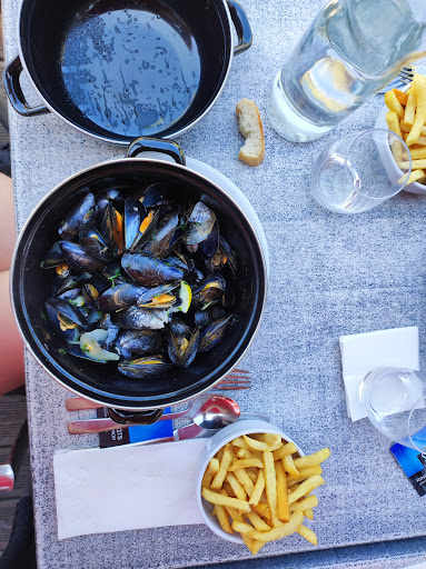 Read moreAu vu de la carte affichée à l'entrée, nous étions heureux de rentrer dans l'établissement. Allez! Place sous la pergola. Commande OK. Pas de menu enfant, c'est pas grave! Un bon steak avec des frites MAISON (tellement rare!) ça va rouler!...Mais la joie fait vite place à la déception! Le steak pour ma fille trop cuit d'un côté et les frites dites MAISON ont l'allure de frites INDUSTRIELLES car trop cuites aussi! Mon fils et moi avions pris des moules avec des frites dites MAISON! "ça croque sous la dent maman!" "C'est juste quelques crabes!"... Au final c'est parque les moules n'étaient pas nettoyés! Des morceaux de coquillages dans le fond des marmites, ça ne donne pas envie de saucer! Mon mari avait pris un burger! Nicolas, le boulanger qui fourni le pain, aurait été aussi déçu, au vu de ce que le cuisto ou comi en fait! Je ne reviens pas sur les frites...Envie d'une part de far breton avec une pointe d'espoir...Mais où est-il? Ah? Caché sous un nappage XXXL caramel! Nous sommes polis, on mange même sans plaisir et écœurés car pas de gâchis mais... Enfin, l'addition...si je fais le point rapport qualité/ prix, je la qualifierai de trop cuites comme les frites...et tout cela sans la vue sur la mer...je ne...