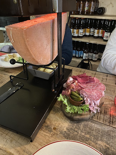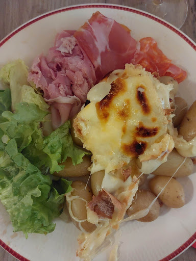 Read moreRestaurant un peu petit, donc on se retrouve très serrez entre les tables. Les appareils à raclette prennent une grande partie sur les tables également, on est pas à l'aise pour manger. On fais abstraction de ça et on opte pour une raclette à 20€/personne, pensant que tout est compris (fromage, patates et charcuterie). Au moment de servir, les serveuses nous indiquent que les plateaux de charcuterie ne sont pas à volonté, contrairement au fromage et aux patates. Bon c'est pas grave si on a faim on en prendra 1 autre et ça ira. Puis les plateaux de charcuterie arrivent et ne sont pas bien garnis. On a pris 2 plateaux pour 10 personnes, on a eu le droit à 1 morceau de jambon, 1 morceau de rosette et 1 morceau de viande de grison / personne. Naturellement on redemande 2 plateaux de charcuterie, mais c'est un supplément de 8€... PAR PERSONNE !!!! ON ETAIT 10 = 80€ LES 2 PLATEAUX DE CHARCUTERIE !!! Un même plateau en grande surface coûte 5-6€. Donc autant dire qu'on avait encore faim mais 80€, de la M**. Donc vous ne finissez pas le fromage, tout seul juste avec des patates, et bah vous le ramenez pas chez vous, vous l'avez payé mais ils le gardent et s'en servent pour les autres plats à base de fromage. INADMISSIBLE !! RESTAURANT POMPE À FRIC. A EVITER ABSOLUMENT ! Heureusement que les serveuses...