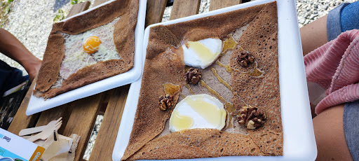 Attention il s agit plus d un "fois tonnelle" je d un resto.... Nous savions une c était le seul snack du sud de l île... Étant a pied nous savions où nous allions .... Il s agit de 2 jeunes gens qui ont installé une cuisine (plaque a galettes et crêpes et quelques tables ) sous une tonnelle. Nous avons pris 2 completes et 2 noix miel chèvres. Pour la completes elles etaient bonnes. Pour l autre c était minimaliste 2 tranches de chèvre du miel et quelques noix.... Rien d autre pas un peu de salade.... Pas de beurre dans la crêpe.... 2€ la bouteille d eau 50cl....en bord de plage oui mais cela ne fait pas tout (attention aux guêpes mais ils n y peuvent rien pour ça).2 étoiles pour la nourriture et 1 étoiles pour les encouragements de ces...