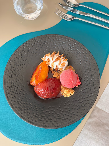 Au sein d’un cadre à la fois sobre, épuré, moderne et chaleureux, nous avons pleinement apprécié les plats proposés. Matière première de qualité et de saison (quel bonheur de déguster les premières asperges !) ; cuissons maîtrisées (le Saint-Pierre était un pur délice) ; saveurs mises en valeurs par un assaisonnement subtil ; desserts qui apportent une pointe de fraîcheur pour parfaitement conclure le repas.