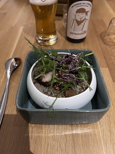 Read moreTrès déçus ! Restaurant joliment décoré Accueil sympathique Mais ça s'arrête là... Nous sommes Vannetais et nous voulions essayer ce restaurant qui existe depuis pas mal d'années. Le menu déjeuner nous donne envie. Quand les assiettes arrivent nous apprécions la présentation soignée. Mais le goût dans tout ça ? Tout est fade, sans assaisonnement, sans intérêt. Tartare de saumon très fade, sans pep's, sans sauce Burgers : cuissons demandées saignantes, la viande arrive bleue et froide. Il n'y a pas d'accompagnement, à part du coleslaw inmangeable à la cannelle Gambas : sèches et sans intérêt, tagliatelles trop cuites à la sauce tomate Le pain qui est servi est acheté congelé et cuit au four avant le service... Pourquoi ne pas collaborer avec une boulangerie du coin ? Les desserts ne rattrapent pas le reste malheureusement. Enfin, la carte des vins est fournie mais les prix sont très élevés par rapport à la qualité proposée. 28 euros une bouteille de Côte du Rhône 2021 !? Quand le serveur arrive pour nous débarrasser, il nous demande : "ça été ?". Je lui exprime donc gentiment notre mécontentement.. Il ne répond rien, sourit et s'en va. A quoi bon demander ? Conclusion : première et dernière fois...