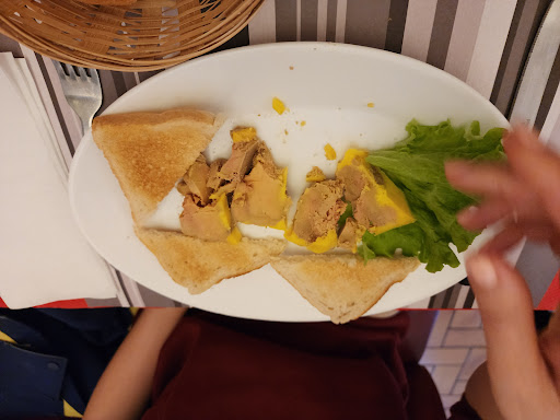 En se levant pour aller payer, on a lu une pareille déception dans les yeux d'un autre couple et avons parlé avec, on s'est promis de laisser un avis sur la fourchette et sur Google pour que d'autres ne se fassent pas avoir comme nous. On ne comprend toujours pas comment les notes peuvent être aussi élevées. Pendant la soirée on entendait le dégoût et les réflexions négatives d'autres clients ('' t'avais raison on aurait mieux fait d'aller au KFC") qui malheureusement disaient à la patronne que tout allait bien ensuite. Un couple est même parti avant même l'entrée.