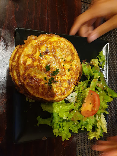I love Spanish Tapas! Unfortunately, this place just misses the mark. While we waited for the rest of our group, I ordered some classics to share: patatas bravas, croquetas, and tortilla de patatas. The portions were good for the price considering the heavily tourist area. The croquetas were wet and bland. The tortilla was overcooked (we had some in Barcelona the week prior). The patatas were average. 2 in our group got burgers. They appeared to be served just as ordered. My husband and I ordered a salad to share (it was huge) and they didn't bring out a second plate until we requested one (and it was tiny). Unfortunately, even though we had a reservation and allocated 1.5 hours to eat, since we ordered after a group of 8, the bulk of our food took a while to arrive...and we ended up having to leave just minutes after our salad arrived to catch our train back to Paris. We chose to be seated outside and it was a bit windy and chilly since we were in the shade - when we went to move inside, they notified us they didn't have any tables for 6 (and weren't willing to seat us upstairs where they had bigger table). So, they brought out a shawl for my...