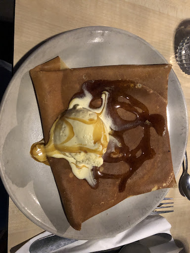 Read moreThis is the only open restaurant in the area. The other ones close their doors after lunch time. We tried 5 different crepes here, combination of sweet and savoury. They are all super good. The guy who served us was very efficient. I think he is the owner. There were about 6 other tables that he was serving and he was very efficient. He works all by himself. He greets customers, finds a table for them, take their orders, cook crepes, clean up, everything!...