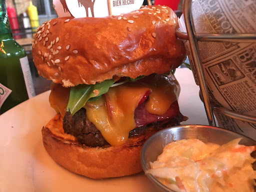 Read moreI tried their cheese burger , its a 50-50 love and hate . A plus for cheese and the caramelized onion but the meat patty was bland no seasoning ( a burger is not a bland steak haché it even had no salt nothing when u eat it alone its tasteless ) . The fries were crispy and oily with a very oily after taste as if fried many times with the same oil . Fries portion is generous did not finish it . The coleslaw had a weird aftertaste of vinegar and not tasty and not close of a real coleslaw ( tiny portion ). The ipa beer draft was refreshing. So my overall food experience was disappointing. Maybe the cocktails selection is better u can skip the food . Fast service and friendly staff . They need to improve on the taste and quality of...