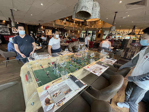 La manageuse, après nous avoir bien accueilli dans les lieux, nous a proposé deux solutions: soit la terrasse extérieure ou bien la fameuse table fuseball "baby-foot". Vous voyez la suite ? Oui, on a choisi la table 2-en-1 et comment vous dire qu'elle nous a enrichi la soirée de la meilleure des manières puisqu'on a pas vu le temps passer pour le service (qui n'était pas très long à mon humble avis).