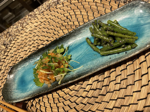 Les menus (avril 2022) sont de l'ordre de trois, Sumire, Sakura et Tsubaki. Dans notre cas, nous avions tous optĂ© pour Tsubaki Ă l'exception de deux personnes (dont moi inclus) pour Sakura. Je ne ferai pas Ă©talage de tout ce qu'on a pu manger car la carte peut changer au moment oĂč vous lisez mon avis. Mais pour rĂ©sumer, je peux vous assurer avec certitude que les produits sont fraĂźchement choisis, exĂ©cutĂ©s avec dĂ©licatesse et subtilitĂ© et on tient Ă mettre en point d'honneur le tofu frit avec son oeuf (ć”ăšéèăźäżĄç°ç ź) ainsi que le steak d'Angus cuit Ă notre convenance ! N'hĂ©sitez surtout pas Ă tester les nigiri-sushis en assortiment, ce n'est que du polish pour votre belle soirĂ©e. En dessert, le mochi au haricot azuki Ă©tait sweety ! Parfait pour terminer ce rendez-vous culinaire nippon.