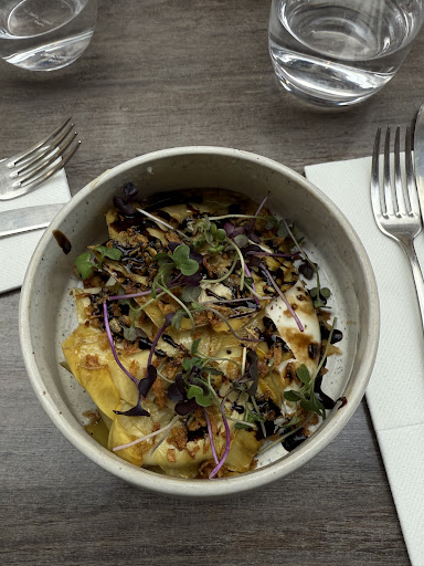I started off with the "L’amour" cocktail, which was perfectly balanced and delicious. For food, we had a beautifully prepared vegetarian eggplant dish along with a tasty starter and some amazing desserts. The highlight for me was the Brookie. It tasted excellent, and I appreciated being asked how much caramel I wanted, a thoughtful personal touch!