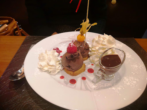 Die Nachtische werden von Eis und Sorbets dominiert. Der Chocolat Liégeois war in Ordnung. Die Cannelés in Rum getränkt mit selbstgemachter Sahne dagegen waren ein krönender Abschluss des Abends.