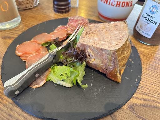 Read moreRepas partagé entre collègues. Il est fortement conseillé de réserver car la capacité d acceuil est limitée. Salle calme qui permet à tous de participer à la même conversation (8personnes). L entrée charcuterie est excellente ( saucisson et terrine ) vaut le détour. Plat unique mais très bon. Le plateau de fromage est copieux. Les desserts dont le baba au rhum semble très bon. Le caviste conseille le vin en fonction du plat...