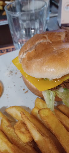 D’abord, le restaurant était immense, mais vide (nous étions 6 clients). J’ai vite compris pourquoi. L’attente était interminable : 40 minutes pour recevoir un burger... avec du bacon alors que j’avais explicitement demandé un steak végétarien (option disponible sur le menu et s'appliquant à tous les plats de la carte en théorie). Quand j’ai signalé l’erreur, la serveuse – qui était adorable et très compréhensive – s’est excusée. Mais malgré tout, il a fallu attendre encore 50 minutes pour que mon plat arrive correctement. À ce stade, j’avais déjà terminé mes accompagnements. De plus, les frites étaient clairement surgelées, et la qualité du burger laissait beaucoup à désirer.