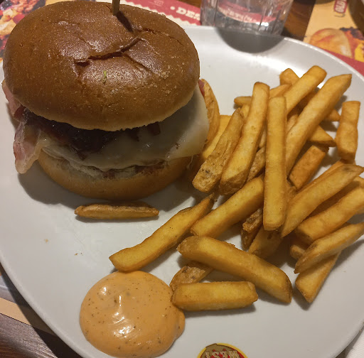 Read moreMy husband did not like his T bone grilled meat it had too much fat in it , served with roasted potatoes and a side of green salad and a black pepper sauce . The chicken burger with avocado was average toasted bun . The fries seems frozen . My son had the escalope with fries . They have a good selection of drafted beers . The aperol spritz cocktail was good . They take allowance meals which is very convenient. Taste...