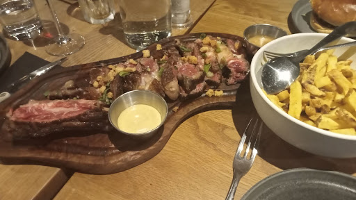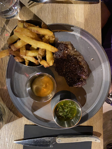 Read moreMauvaise expérience. Les prix sont très élevés, mais pourquoi pas, si les prestations le justifient. Ici, les viandes sont de bonne qualité, mais l’exécution est ratée et le service est très amateur. On demande une information sur un des plats, la serveuse répond par du qualitatif uniquement « viande avec un goût incomparable à une autre viande »… on comprend que ça ne sert à rien d’attendre d’elle une quelconque expertise, elle récite un un texte appris par cœur qu’elle ne maîtrise pas. Les 2 viandes commandées saignantes arrivent bleues. Je fais repartir la mienne, mais c’est dommage car quand c’est repassé ensuite, la qualité est moins bonne (viande caoutchouteuse), l’accompagnement refroidit… C’est dommage de ne pas respecter les produits (ni les clients). A la fin, la serveuse nous demande si tout s’est bien passé, je lui réponds que les cuissons n’étaient pas respectées. Elle me répond : « ah oui c’est pour ça qu’on passe régulièrement, pour qu’on puisse peaufiner la cuisson car on préfère que la viande ne soit pas assez cuite car c’est rattrapable ». Qu’est ce que cette excuse ?!! Elle nous avoue clairement qu’ils font exprès de sous-cuire la viande. Quel aveu d’amateurisme ! Lorsqu’on demande une cuisson, c’est pour qu’elle soit respectée, surtout en ayant la prétention de pratiquer de tels prix. Tout doit être maîtrisé : l’accueil, les produits, la cuisson, le service. Les desserts arrivent et là je me rends compte que ma bouteille de coca dans laquelle il restait 1/3 de boisson a été débarrassée !!! Je ne m’en étais pas rendue compte. Mon dessert (moo-cuit) était très très sec et la glace pistache sans goût (pourtant 11€ !), mais passons. Nous nous dépêchons de terminer et d’aller régler. La serveuse nous fait régler en ne nous présentant aucune addition. Bref, des viandes de qualité, mais une exécution très bas de gamme en cuisine comme en salle. Restaurant...