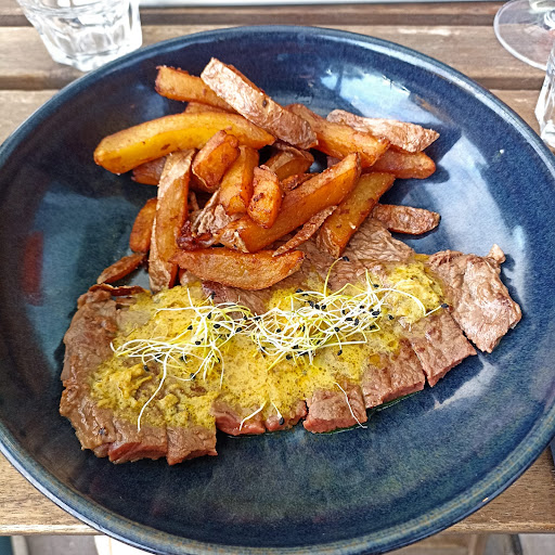 Read moreA fuir ! Le pire restaurant que nous avons fait cette année. Des prix très élevés pour une qualité médiocre. Le serveur très sympathique cependant. Nous n'avons mangé que les frites car elles sont bonnes. 22 euros une entrecôte qui ressemble plutôt à un steak, pour sûre ça n'était pas une entrecôte, et une entrecôte dans une assiette creuse avec 4 frites. Nous demandons un peu plus de frites et ils nous facturent 4,5 euros de plus, donc 26,5 euros pour une mauvaise entrecôte. Le burger au porc, je n'ai pas de mot, immangeable je n'ai pas pu l'avaler. Et l'apéritif, nous avons demandé des olives ou des petits gâteaux apéritifs, ils ne font pas ça m'ont-ils répondu. Amateur sûrement mais dans ce cas baissez les prix! Et le manager en short et casquette à l'envers qui fume devant les clients, bof bof 🤣 c'était la première fois mais forcément...