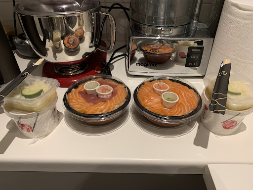 Coté plats, malheureusement j'ai pu tester pas mal de choses et je trouve que ce n'est pas extraordinaire. Les brochettes sont fades, le riz frit n'est vraiment pas bon.. On a l'impression que tout est congelé sauf les sushis qui relÚvent un peu la note mais qui ne sont hélas pas au niveau.