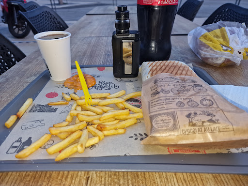 Commandé 1 Tacos 2 viandes (cordon bleu, kebab) sauce algérienne biggy -- super portion, frites surgelées dommage... 2 petits pots de sauces pour les frites c'est niquel. le tacos était chaud, emballé dans de l'aluminium donc ça garde bien la chaleur