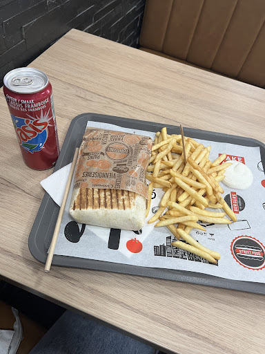 Commandé 1 menu wrap avec 1 bouteille d'eau + wrap poulet avec galette de pomme de terre, salade, tomate, sauce algérienne + portion de frites la galette du wrap semble fait maison, c'est super cool! J'ai eu des bons gros tendres de poulet, tendre et généreux, pas sec, blindé de sauce et de crudités, la galette de pomme de terre ne rend pas le truc sec ou n'est pas bourratif. ya une bonne dose des ingrédients dans le wrap!